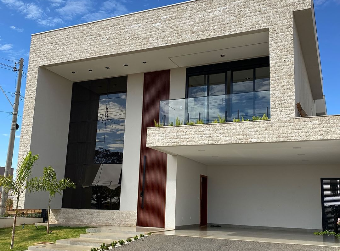 Em projetos bem executados, o resultado é claro. A fachada não parece apenas revestida. Ela parece esculpida.